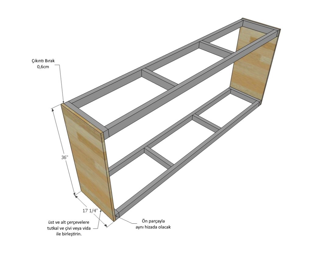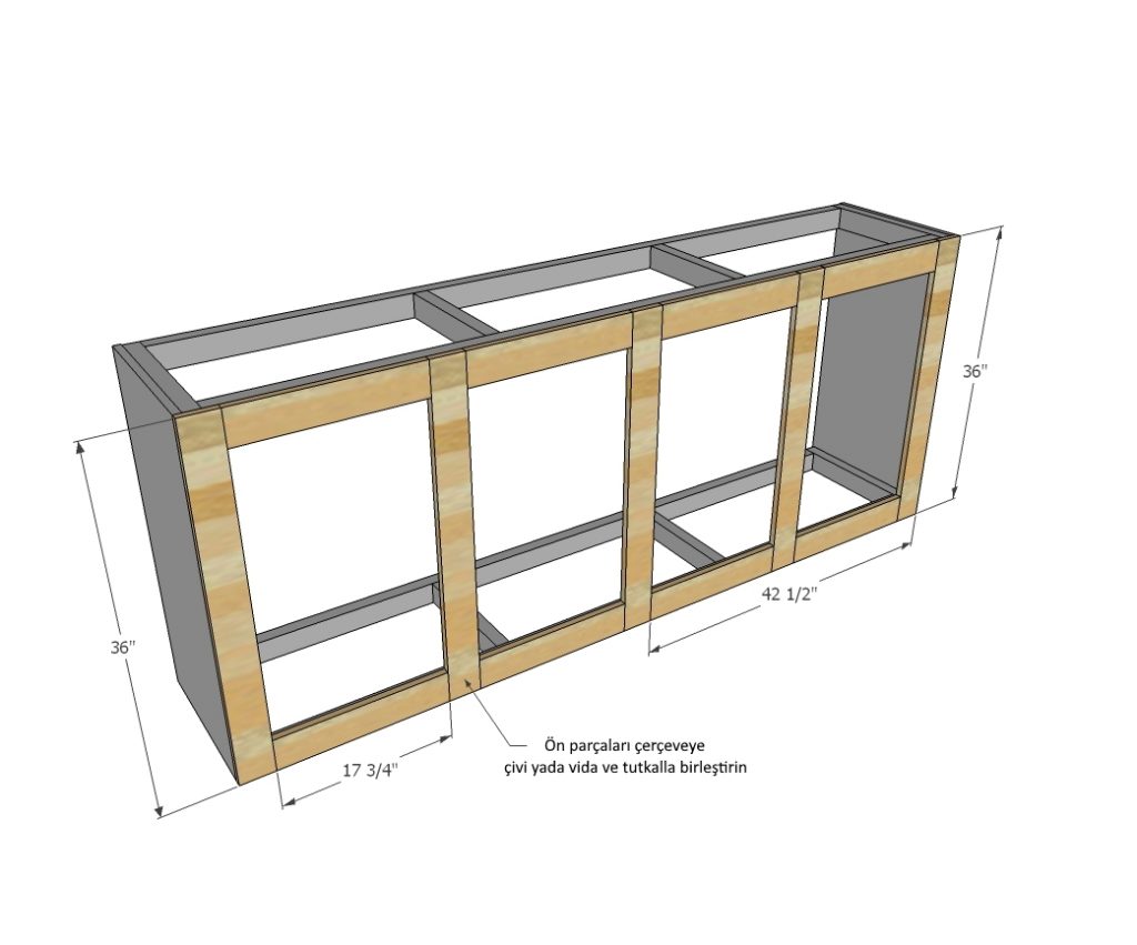 - 2 tane 17-1/4″ x 36″ dolap kapağı için panel