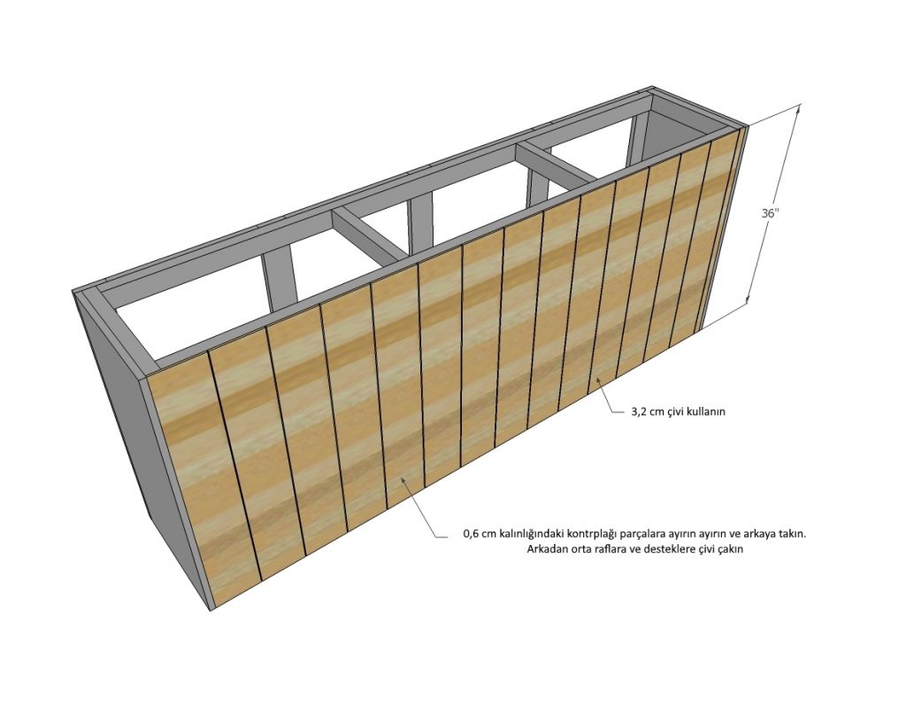 - 1/4″ kalınlığında kontrplak parçaları 36″ uzunluğunda