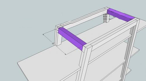 İÇ ÜSTLER: Üst iki ayak arasındaki mesafeyi ölçün ve 1×2’lerden kesin, her iki ucu 10 derecede kesin, 2 tahta yaklaşık 23″ uzunluğunda olmalı. 1 1/4″ çivi ve yapıştırıcı kullanarak yerine çivi çakın.