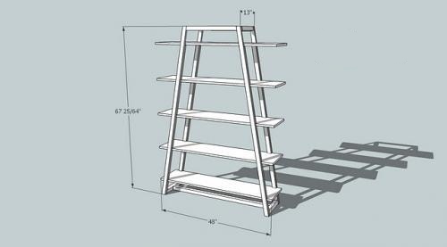 RAFLAR: 5 tane 1×12 @ 48″ kesin (1 tane 2,5 metre uzunluğundaki tahtadan iki raf elde etmek için rafları biraz daha küçük kesebilirsiniz). Rafları iç bacak parçaları arasında kalan boşluklara yerleştirin. Rafları ayaklar üzerinde ortalamanıza yardımcı olması için yukarıdaki ölçüleri kullanın.