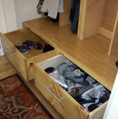 - B) 1 tane 3/4 kalınlığında 23″ x 28 1/2″ boyutunda kontrplak (Çekmece dolabının altı)