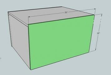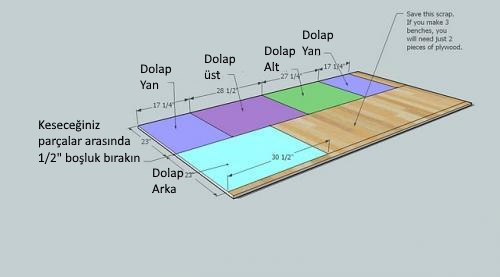 - H) 1 tane 1/2 kalınlığında 30″ x 18″ boyutunda kontrplak (Dolabın Arkası)