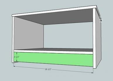 - G) 1 tane 1×2 ebatında 27 1/2″ uzunluğunda tahta (Dolap alt döşeme)